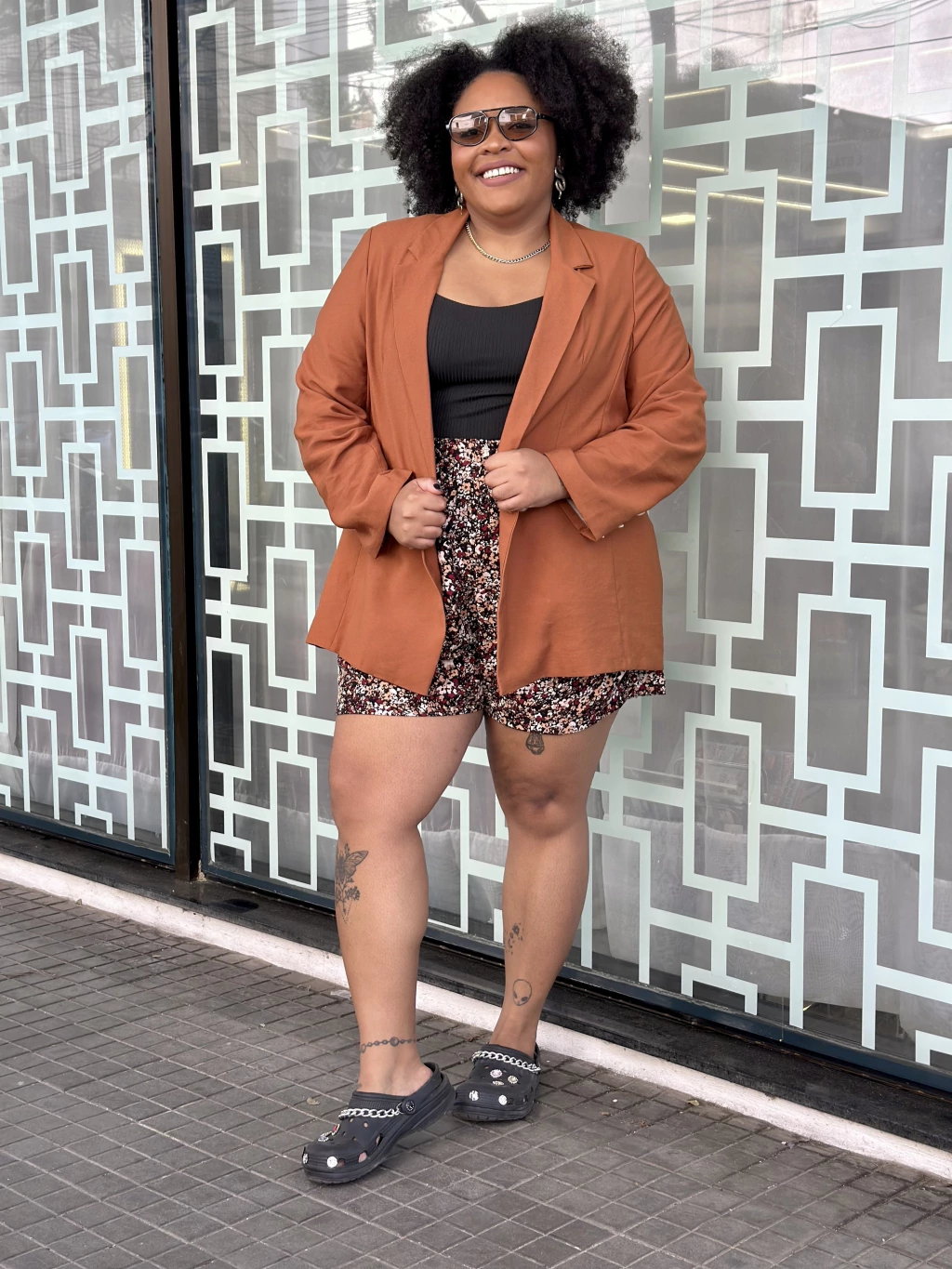 Por ter a modelagem Oversized, recomendamos que caso você prefira a peça mais justa ao corpo, escolha um tamanho menor.