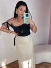 Mariana possui 106cm de busto e veste tamanho G (modelo de pele clara com cabelo longo escuro)