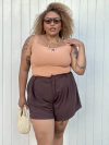 Mariana possui 106cm de busto e veste tamanho G (modelo de pele clara com cabelo longo escuro)