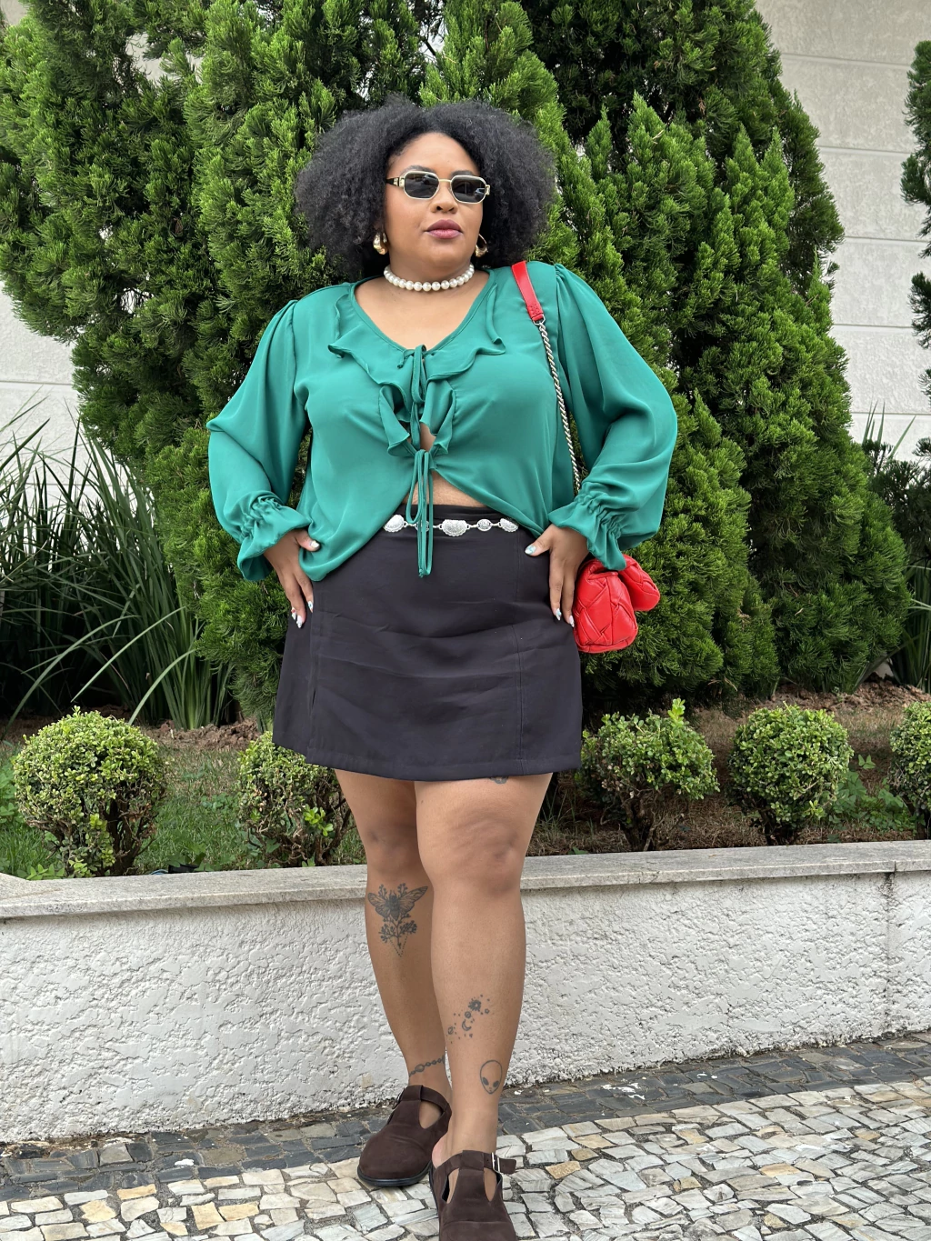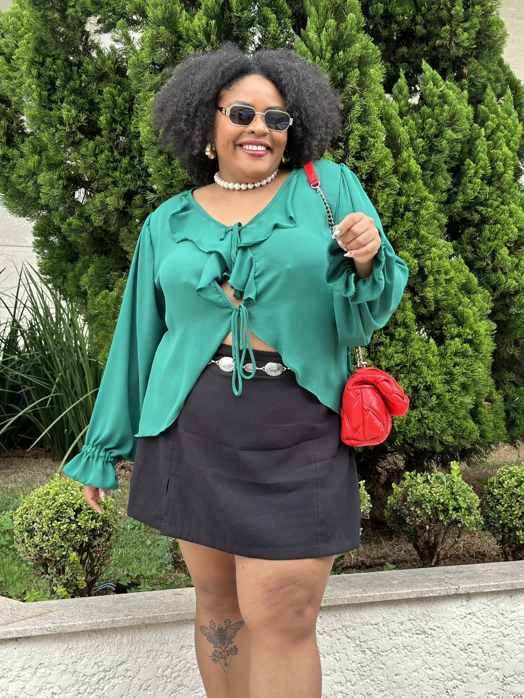 Cobertura frontal do short por saia com presponto finalizado em fenda.