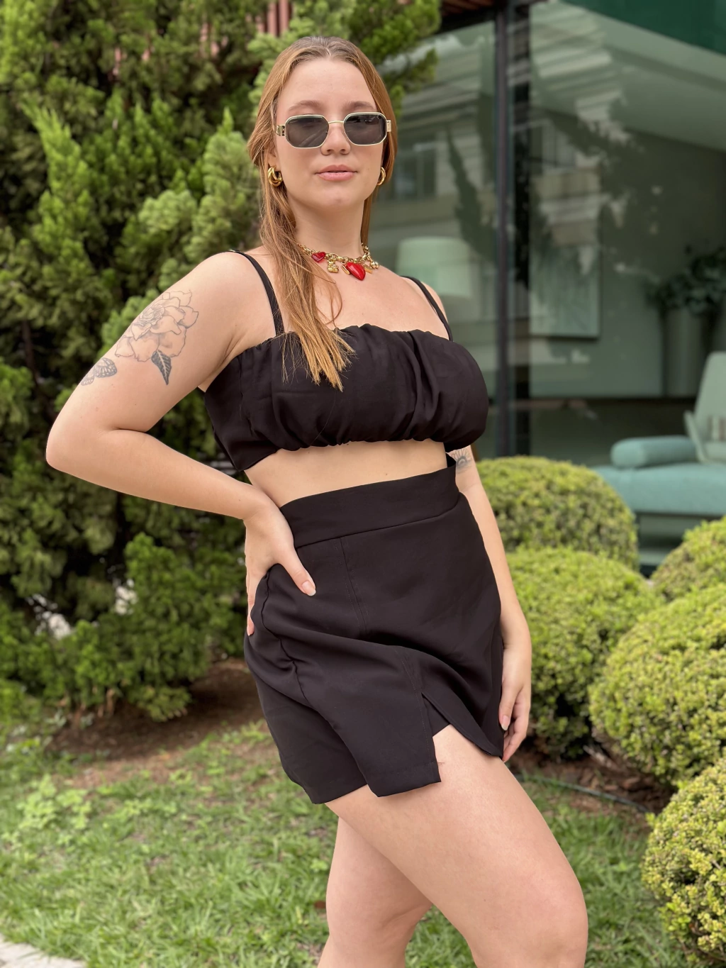 Short Saia em Viscose de Alfaiataria (Sarja leve) na cor Preta.