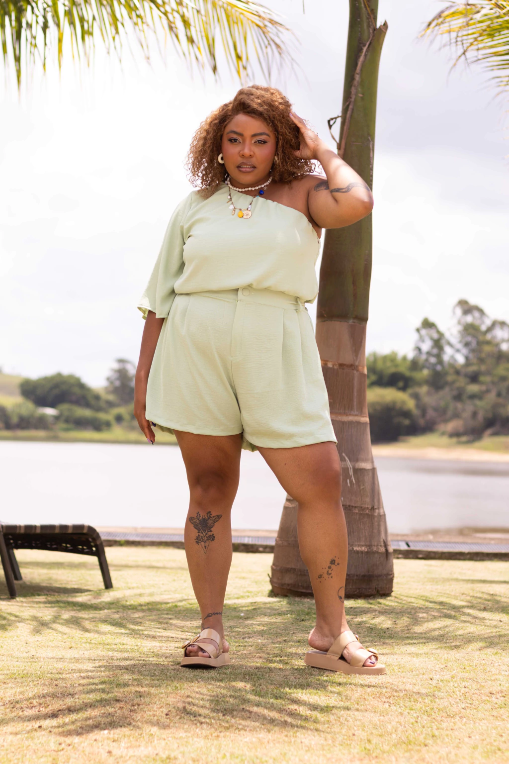 O queridinho das Madames em uma nova cor: Verde Eucalipto! Em Crepe Airflow (97% Poliéster 3% Elástano). Possui cós com botão encapado pelo mesmo tecido, zíper frontal, bolsos faca discretos e elástico na parte de trás da cintura. Perna soltinha, perfeita para as madames com coxas grossas. Comprimento curto mas que não atrapalha e nem fica desconfortável.